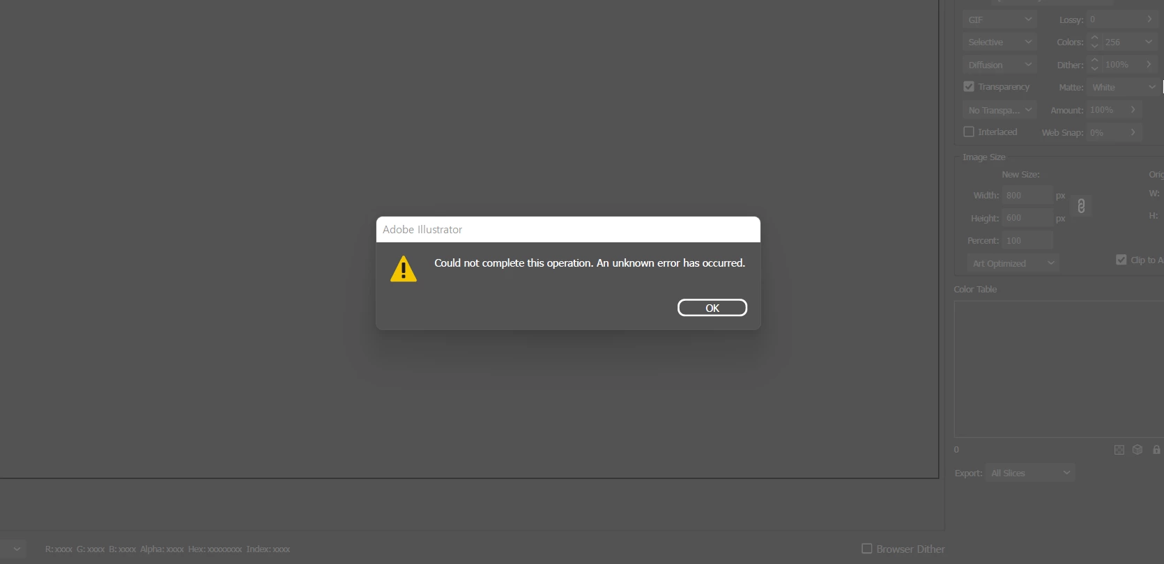 Does the error appear when you open the Save for web dialog box? Or only when you click on save?