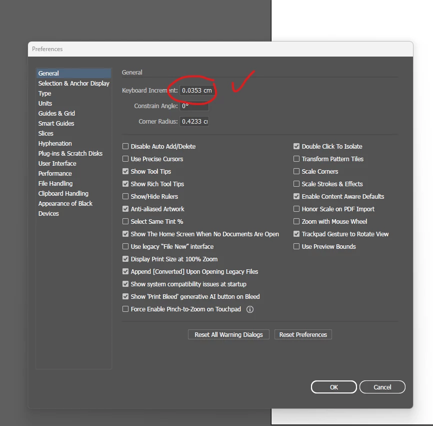 In the previous version of illustrator when I open preference dialog its help me to change the keyboard Increment fast as showing in the image below but the last update bad because it has a search bar In my openion the previous is the best because its fast to change the keyboard Increment and not change the general unit as the last one