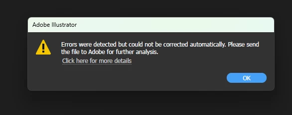 I am encountering an issue while opening Illustrator files. Each time I try, I receive the following error message:
