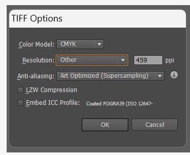 Open the image in Illustrator and save it as a .tiff file. The resolution is not fixed.