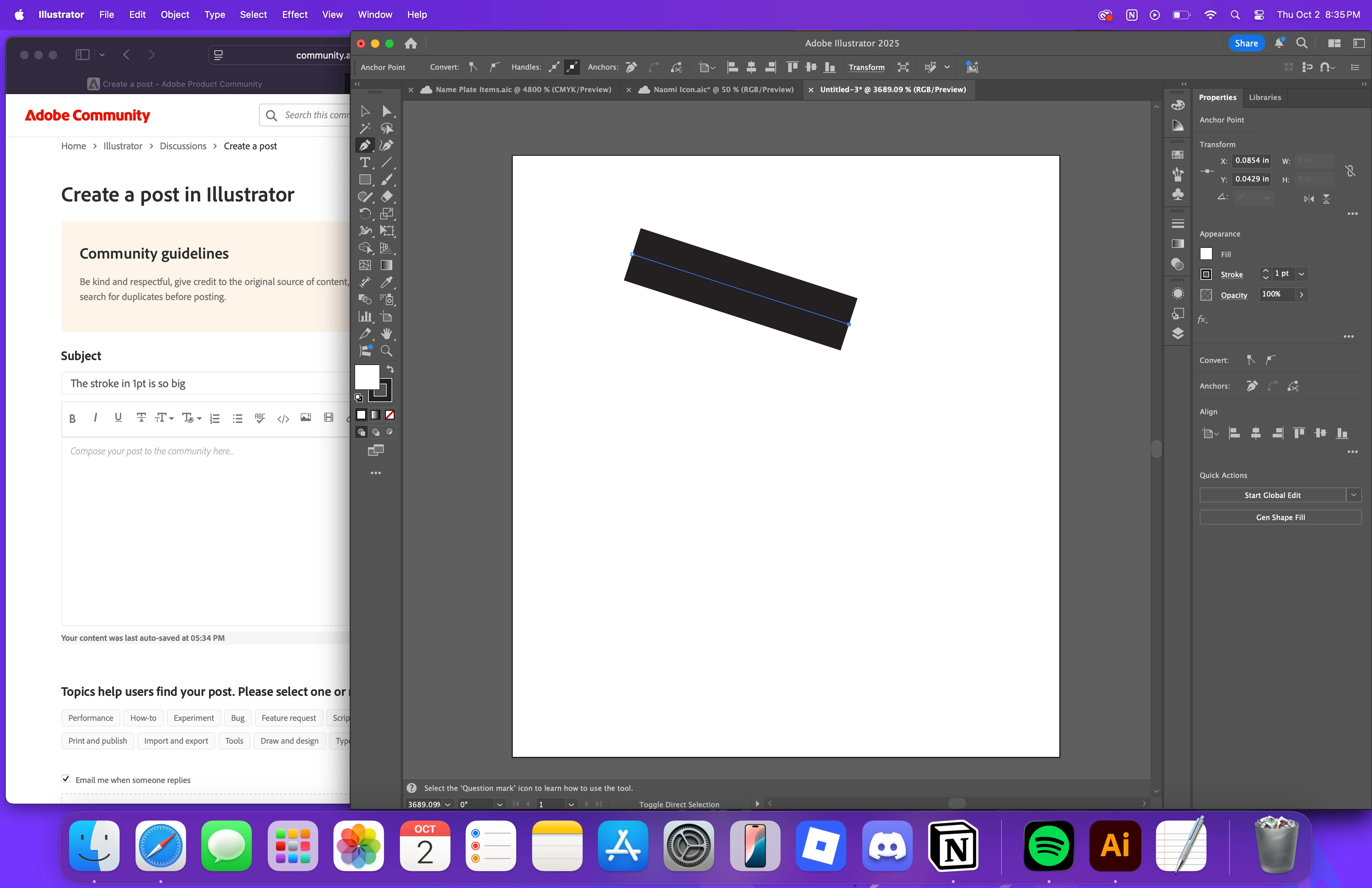 Im trying to do a project and was using the pen tool but some how the pen tool stroke at 1pt is way to big