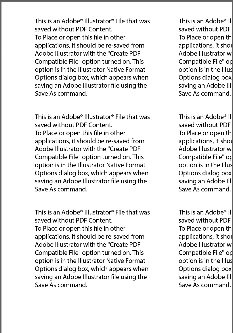 This is an adobe illustrator file that was saved without PDF Content message