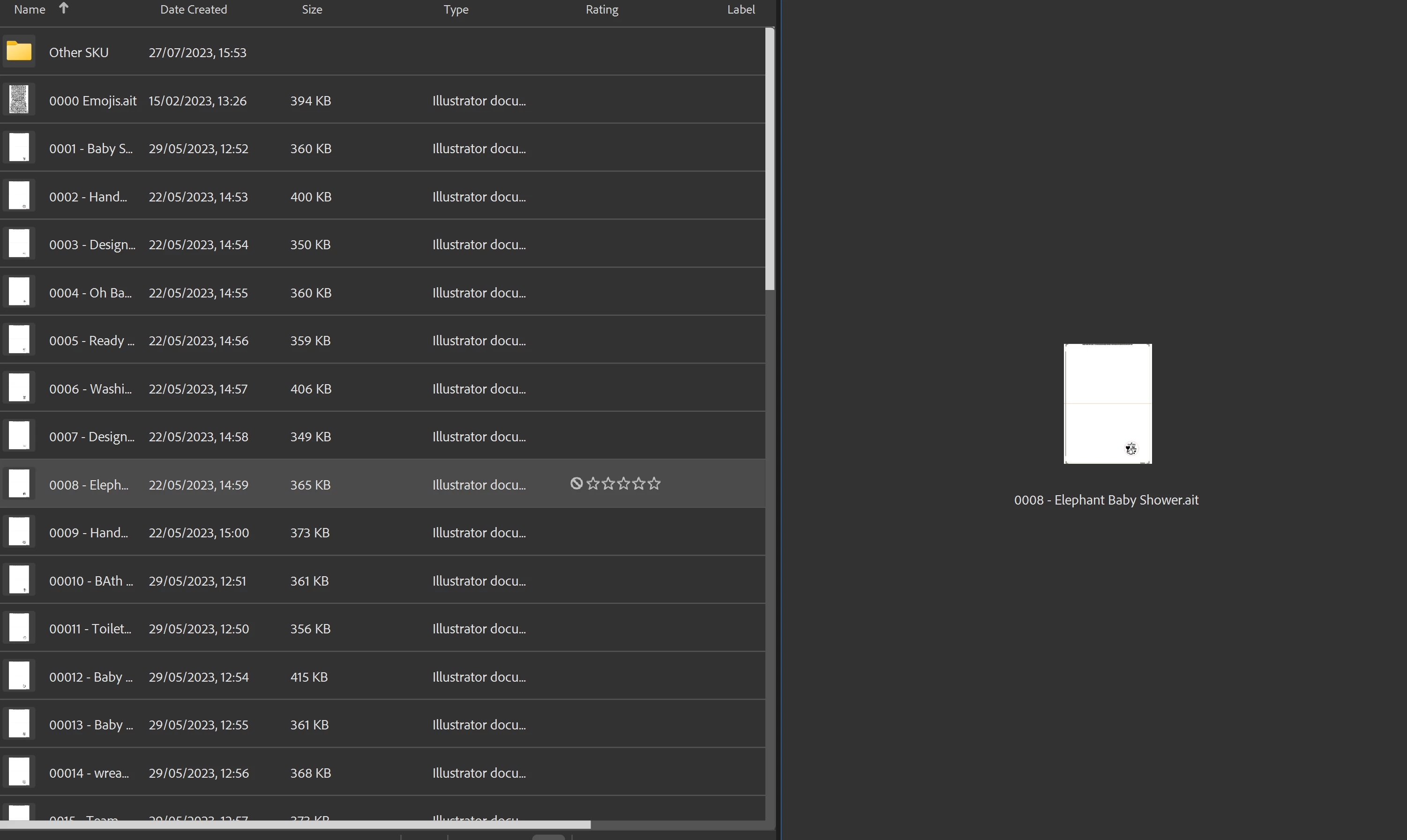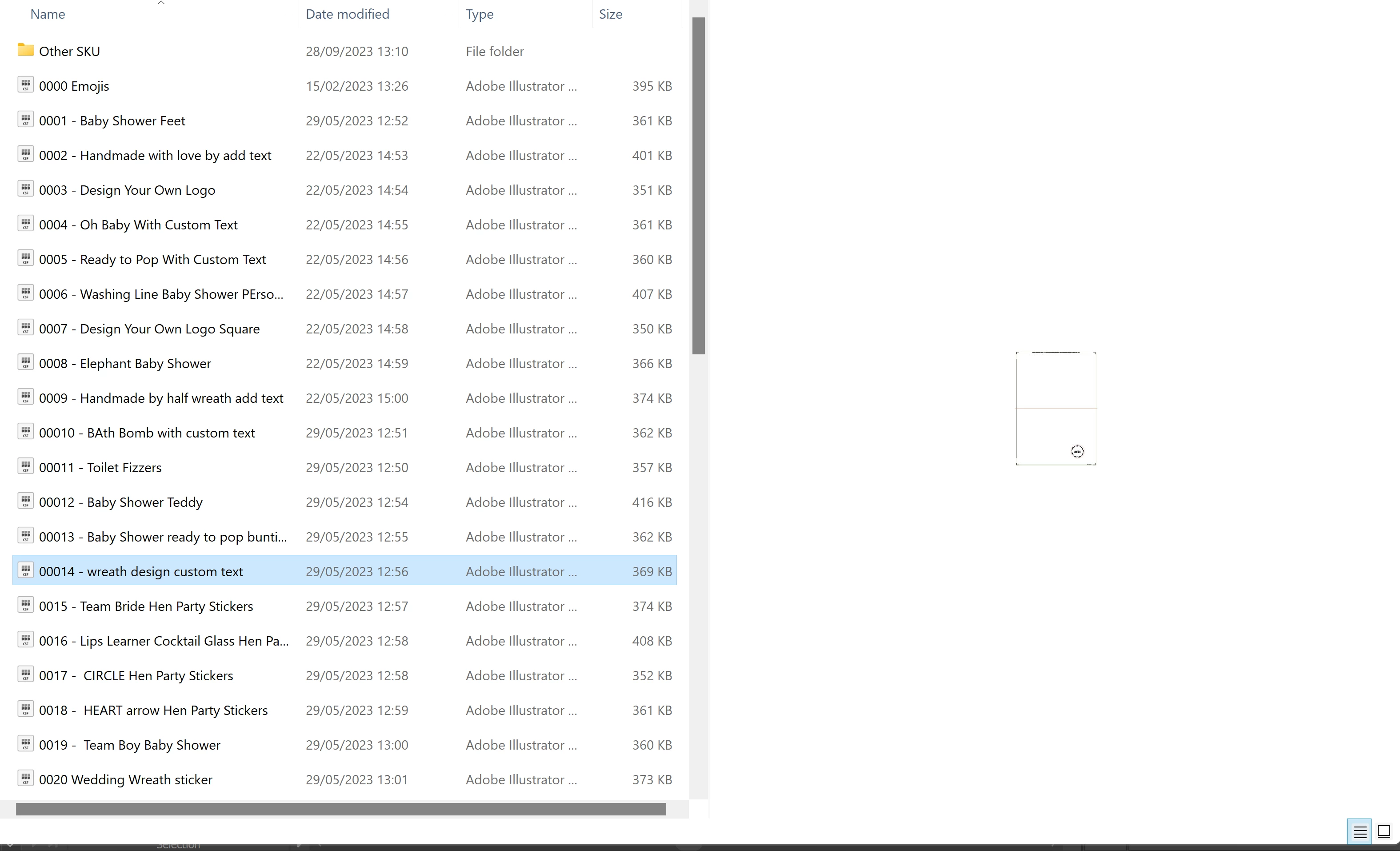 Hello please see screenshot attached. The thumbnail is very small - PDFs show up ok and large and also PNG etc but AI files and AI template files are to small to see - please help - I am pulling my hair out. Thank you