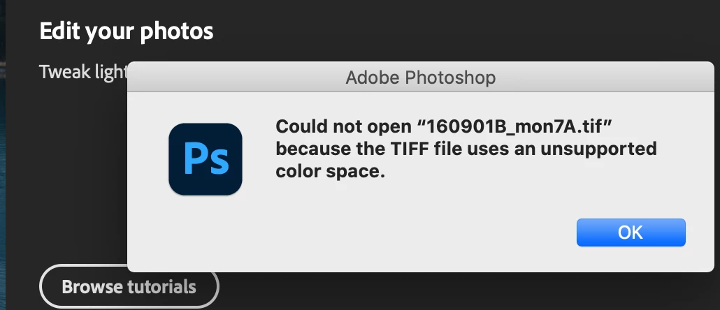 I'm trying to drag grayscale tiff files into Illustrator and I get an error ("The file is not readable"). I also tried opening the same files in Photoshop and it says that they use an unsupported color space. This is using Illustrator 26.3.1 and Photoshop 23.3.2 desktop versions in Windows 10. There is a trick I found on YouTube where if you open an image file in Paint and immediately re-save, it will suddenly work in Illustrator/Photoshop but I've got 100s of these files so this isn't exactly practical! Attached is an example of one of the tiffs.