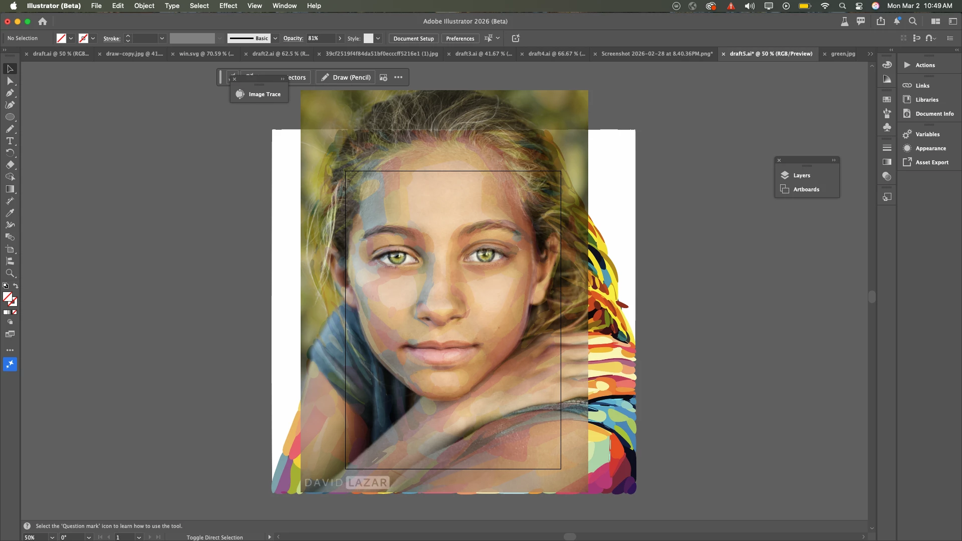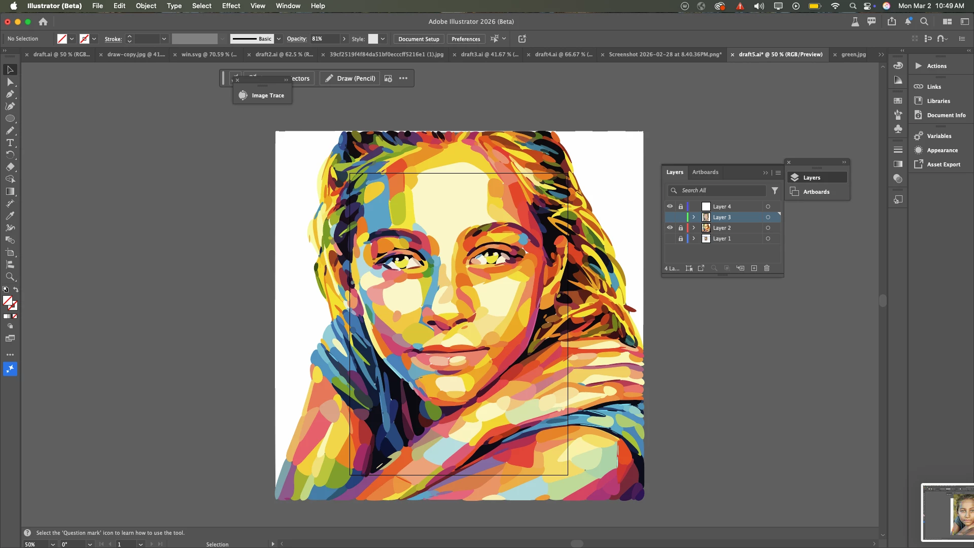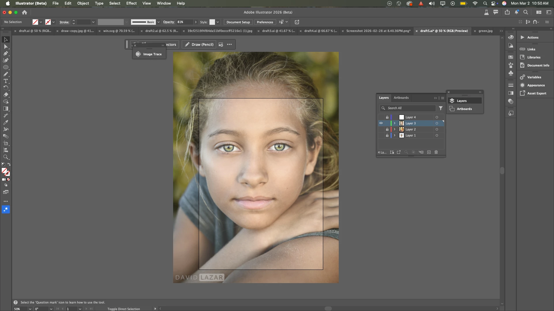 I have two layers I am trying to trace on. When I lower the opacity on one layer, the image does not show through clearly. Is there any way to fix this?