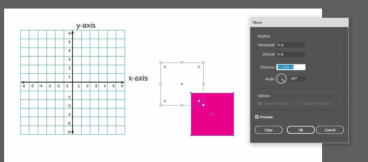 Why doesn't the transform-move input measurements follow the the x/y axis mathematical chart we were all taught in school? Positive numbers should move the object up and to the right, but it moves to the right and down??
