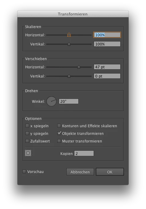 I want to get similar transforms with rotate and translate as I get it with the Transfommation Effect on multiple copies. But somehow the rotation of the Filter puts a different transform than doing it with rotation in js. With js the copies get rotated around a center, that is on the same level for all objects. With the filter the translations seem to have an different origin/direction. I dont get the logic how to get the same output with js.