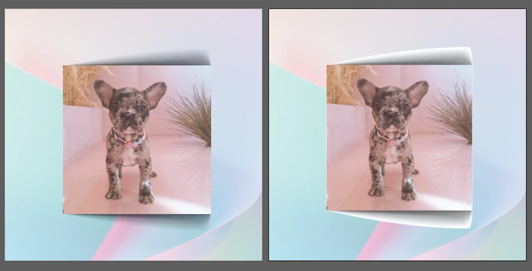 Now the idea is to have these "paper cuts" attached to a photo that floats over the parallax background on the website. Something like below. In this particular example, the two paper cut shadows would be grouped with the photo of the puppy and exported as one PNG.
