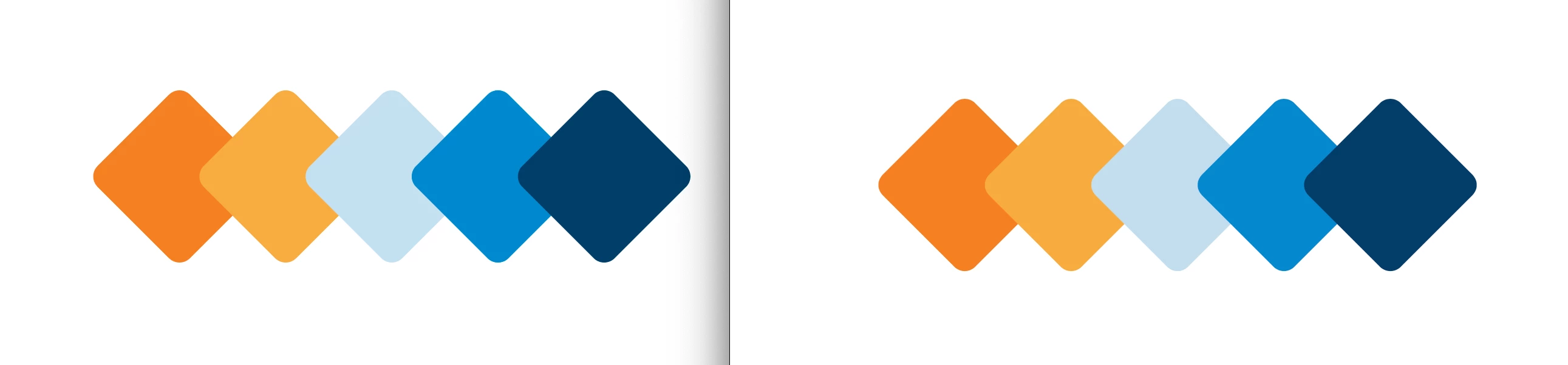 Attached screenshots are working file on the left, PDF on the right. The vibrance, and especially the blue tones, are very different, especially noticable with larger coverage areas.