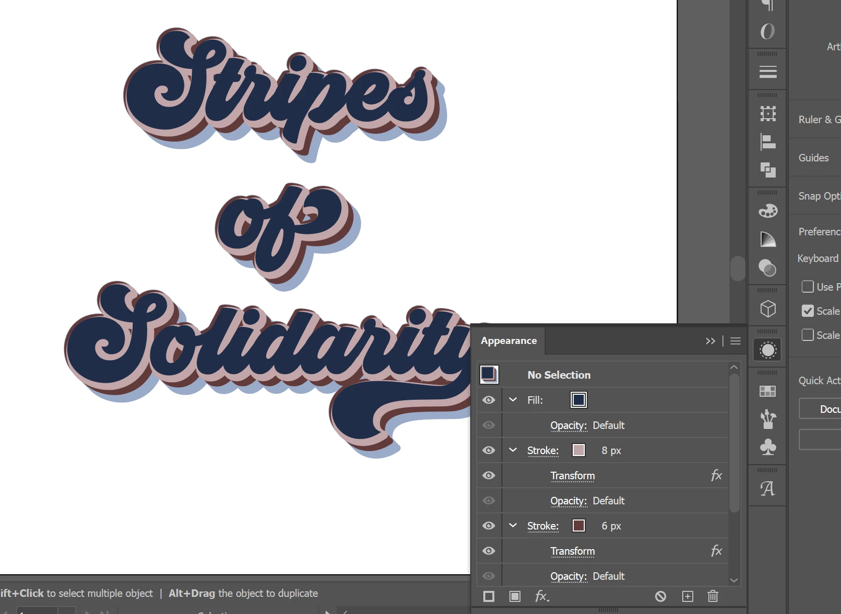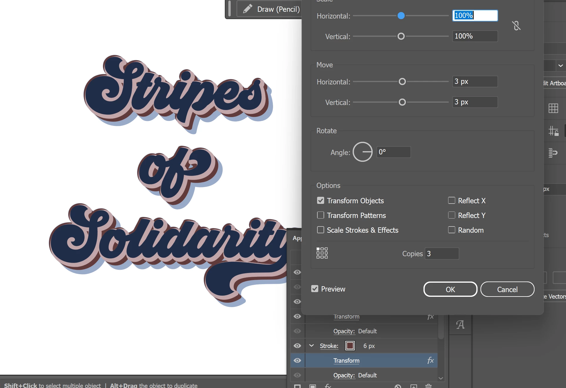 Hi, I'm having trouble figuring out why the burgundy stroke is showing on the top of the original text, whereas the pink stroke is angled to be to the bottom left of the original text. The burgundy stroke is duplicated from the pink stroke. I've shown the transform tabs for both strokes in the attachments. Thank you for any help!