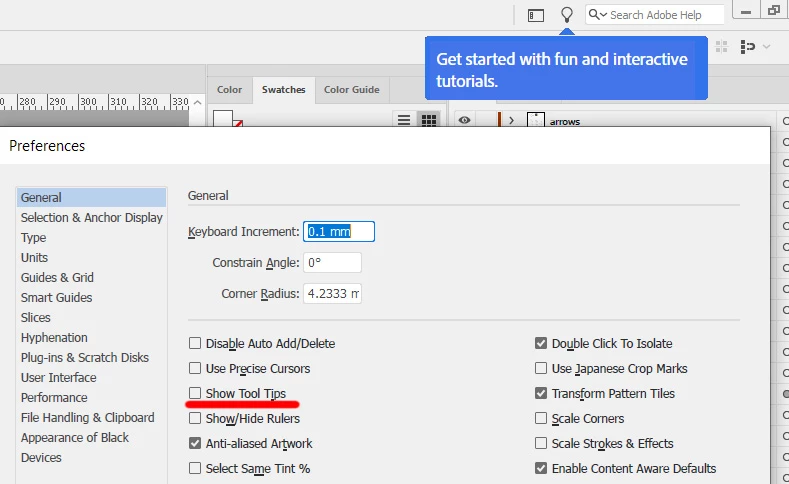 Does anyone know how to turn off this notification for the Learn window in Illustrator? It pops up every single time I open Illustrator, multiple times a day regardless of when I last opened, and it's driving me crazy. It's not useful or interesting, but I can't find anyone that's successfully turned it off.