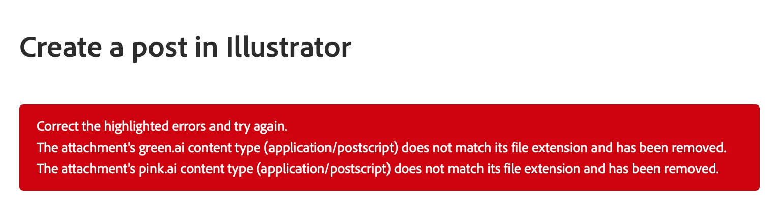 I am trying to ask a question in this forum, and provide the sample files, both generated in Illustrator, but when I want to attach them, again and again I get this sign in the red frame...