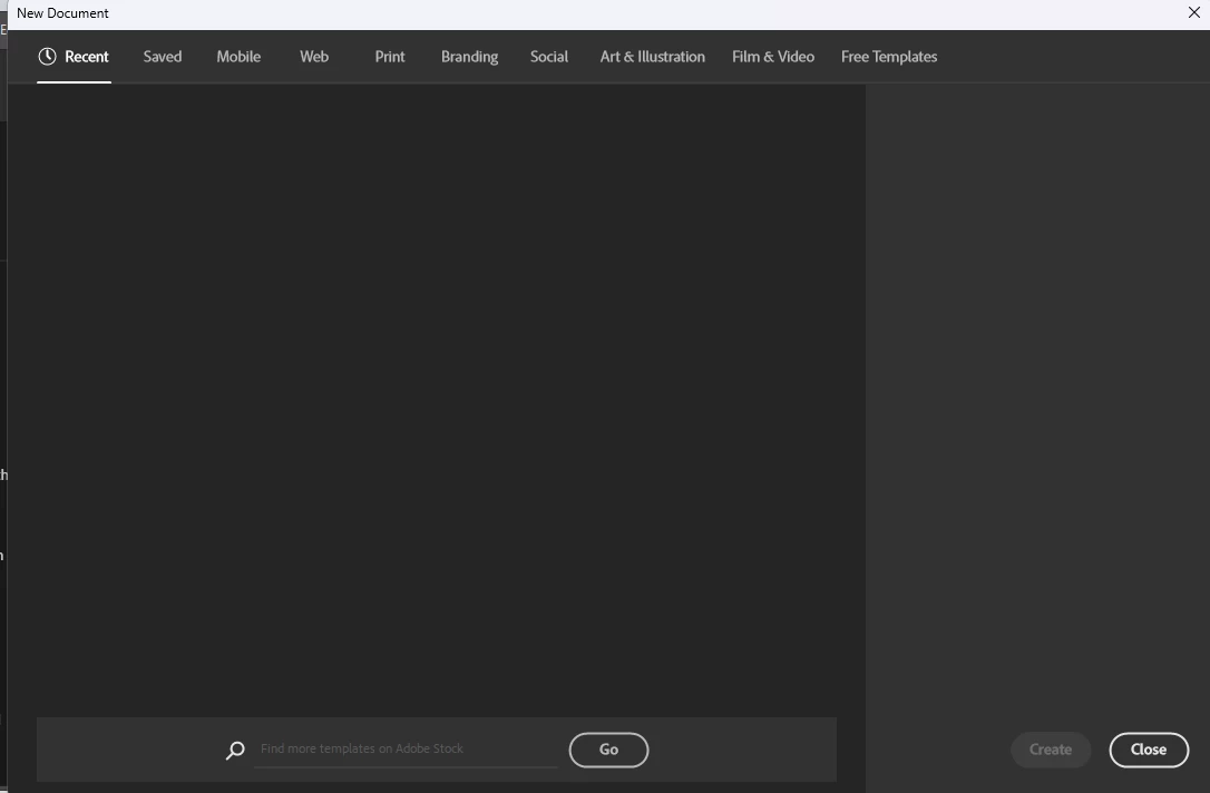 Hi there, I have not opened AI for a while and I am now unable to create a new document as the screen does not show any option for a blank custom document. The screen now only shows template options and the 'Creat' button is not highlighted. Please see the screenshot attached. Many thanks for your help in advance!
