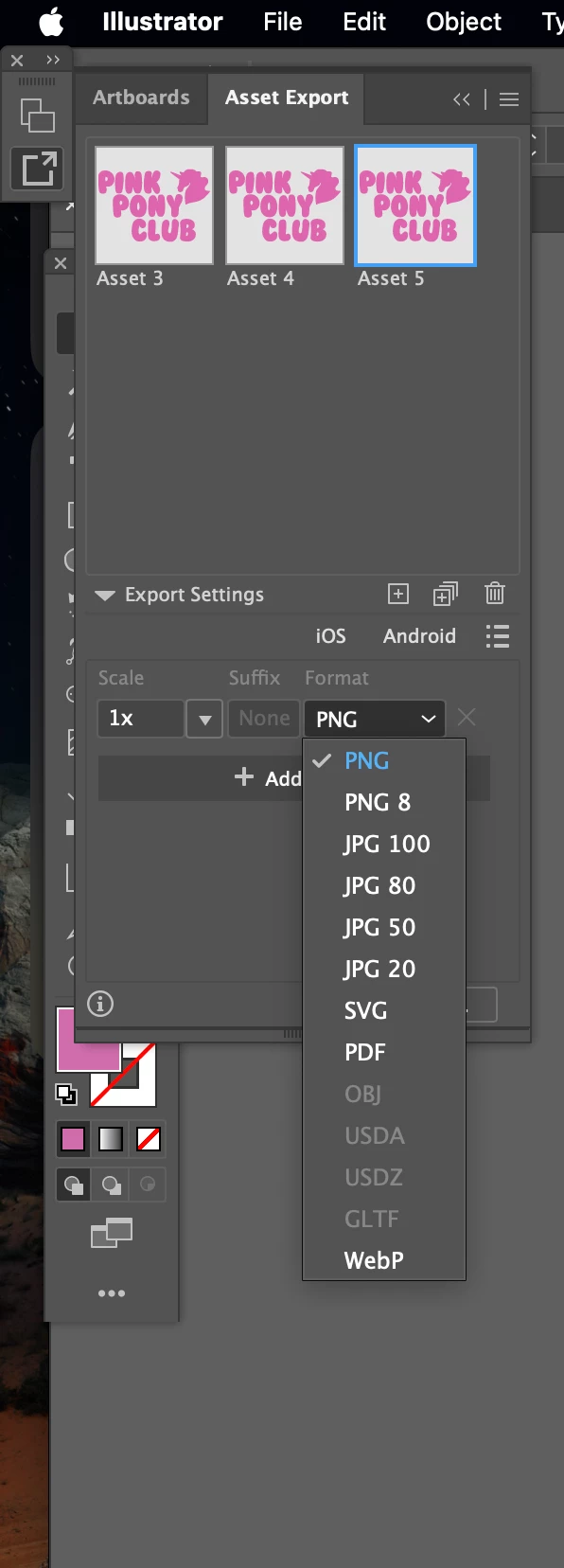I was unable to find a fix for this in my searching here and other sources, I am a beginner with Illustrator and 3D file types I am trying to export this as GLTF but it is grayed out (see image). I am not certain what I am doing wrong, and yes I have selected the asset and there are other file types clearly available to select. Trying export to put it in Adobe Dimension. Thanks!