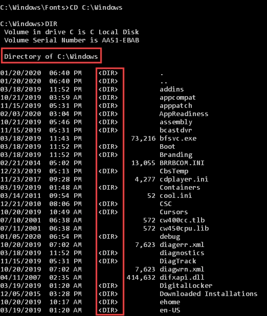 Notice the <DIR> in the red rectangle. That DIR is denoting a Directory. Nothing like that in the Fonts folder. Is your Fonts folder you are looking at in the Windows folder.