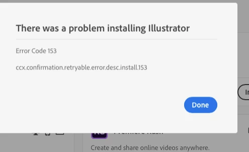 He intentado actualizar mi illustrator pero dió un error (153) que no he odido resolver, intente descargar la versión anterior que teniea y que habia desinstalado pero ahora no puedo volver a 2019, en resumen, no tengo ninguna de las versiones de Illustrator debido al error que arroja al intentar descargar.