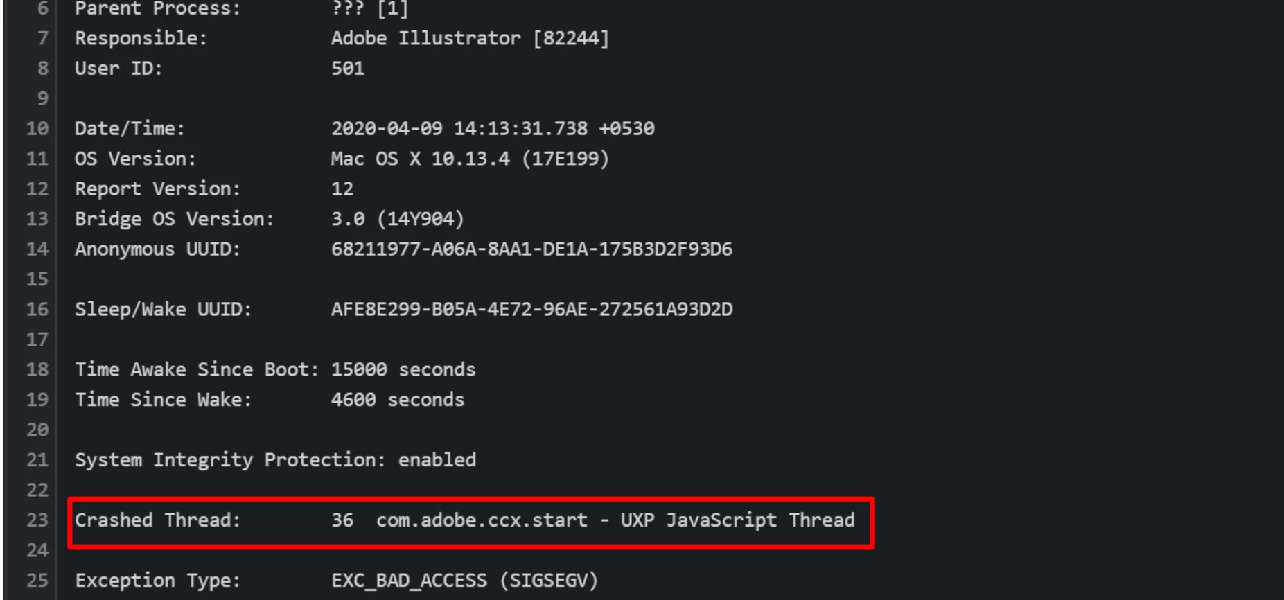 • Open the crash report given by Illustrator.