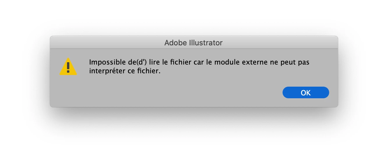 Unable to open a file in Illustrator(Error: The external module can't interpret this file.)