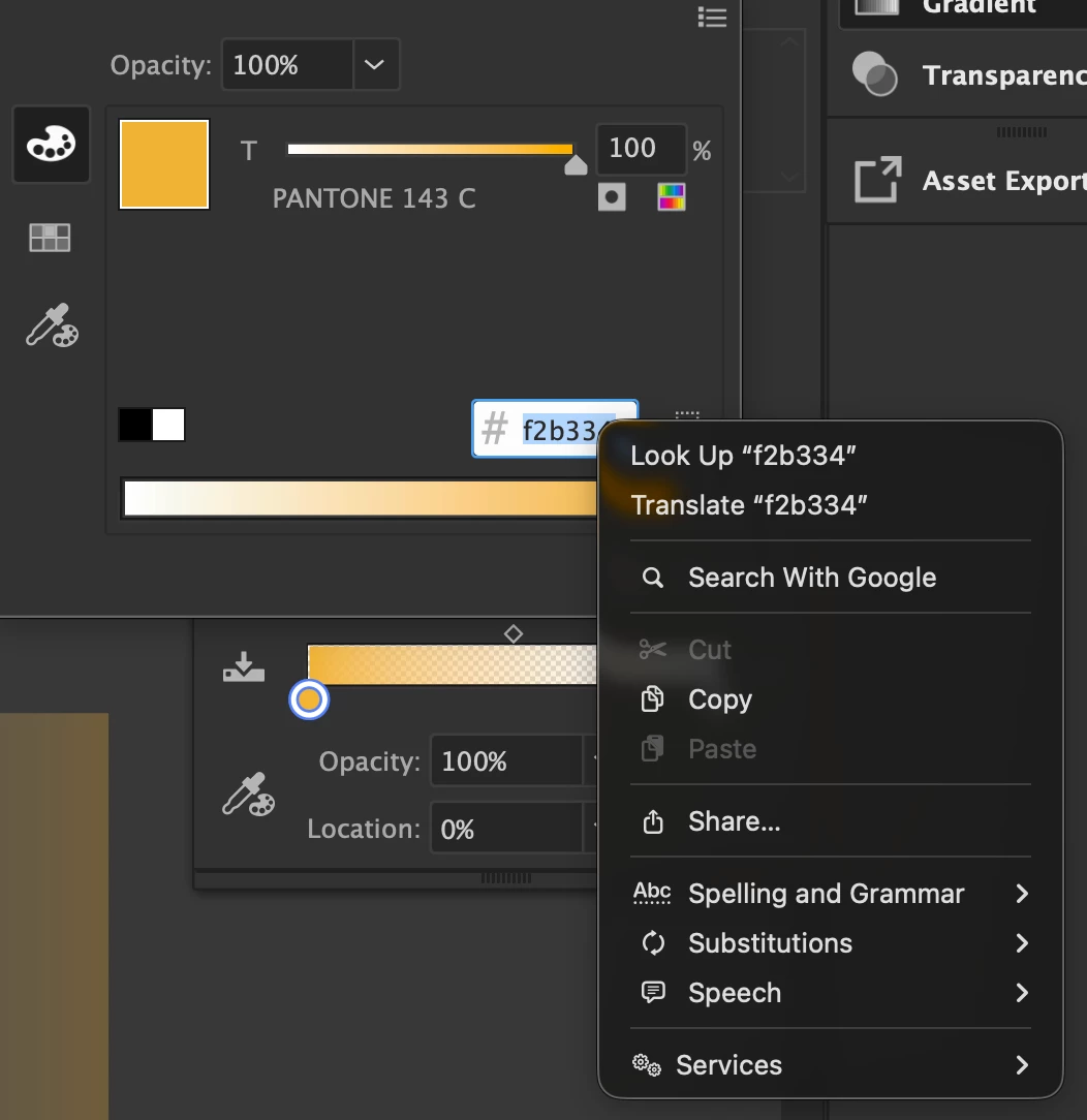 Unable to paste in the color value for gradient sliders - Illustrator 30.2.1 on macOS