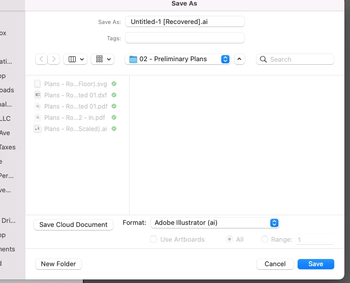 Unable to Save or Export files from Illustrator 2022 (26.0) on macOS Monterey
