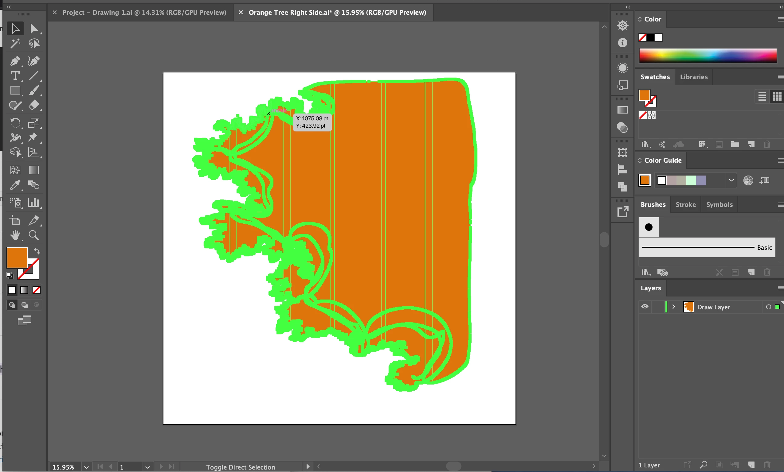 This is a drawing made in Vector Draw and sent to Illustrator. It is one piece of a much larger, layered drawing.