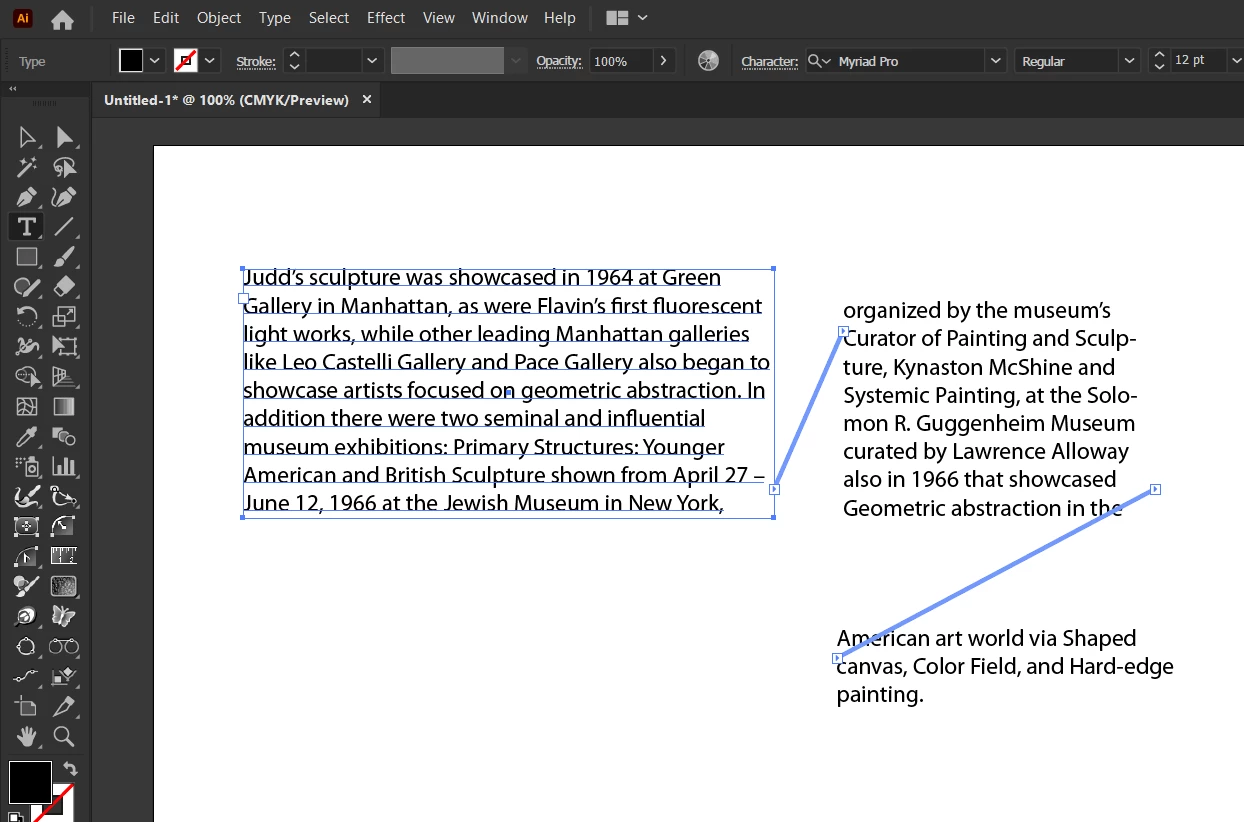 unlink text boxes in "illustrator"