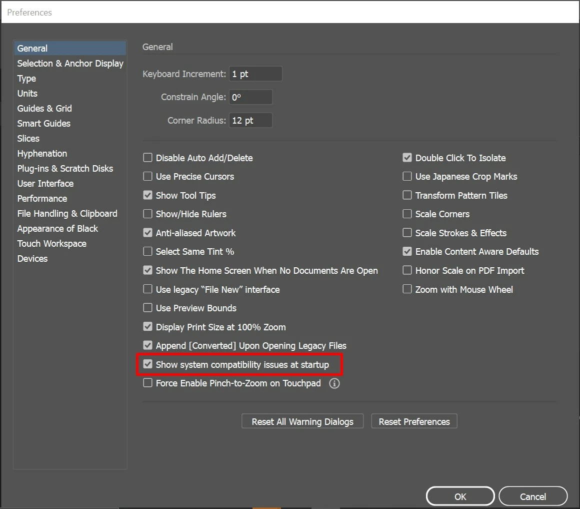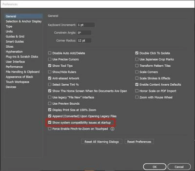 Edit > preferences > General > Show system compatibility check.