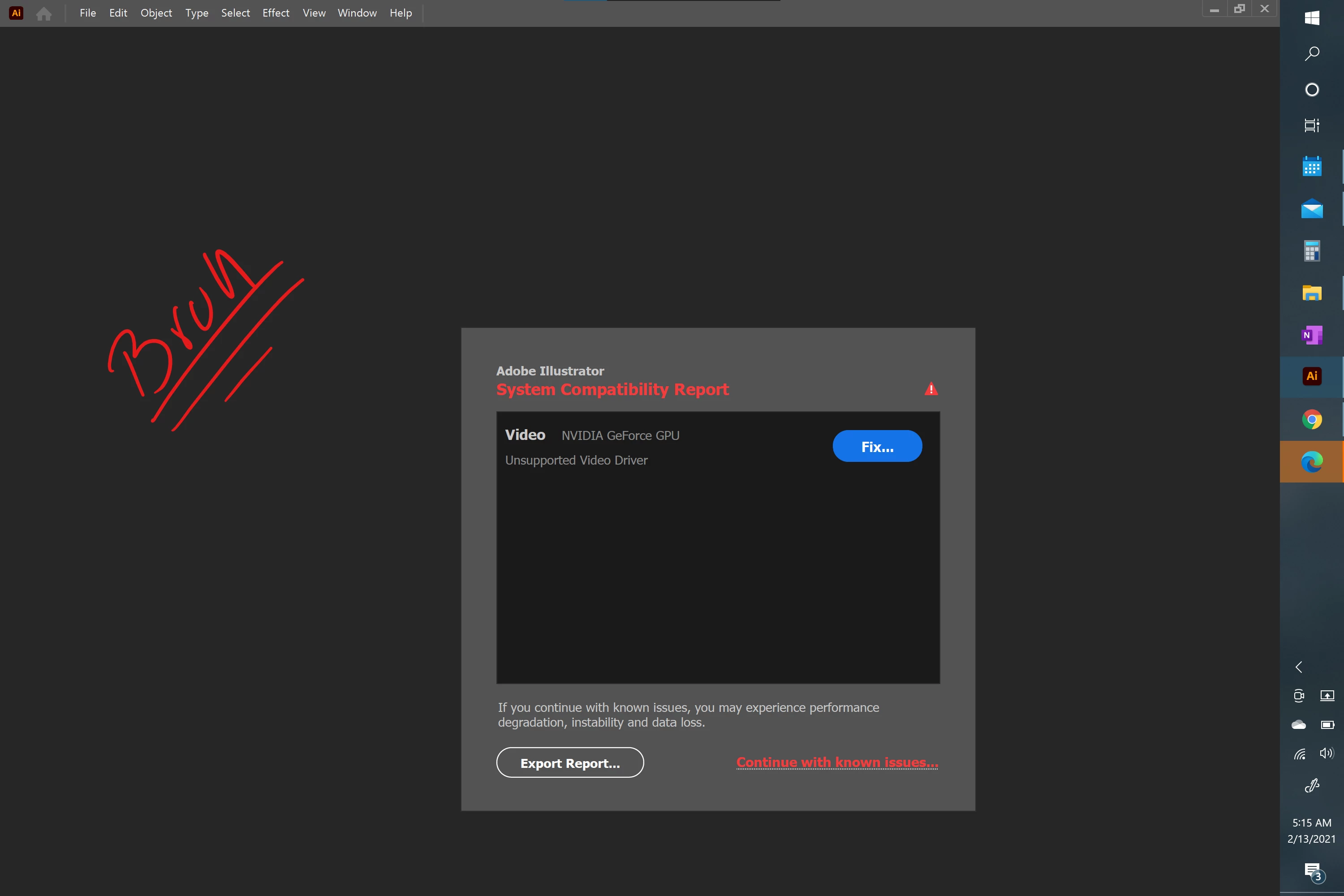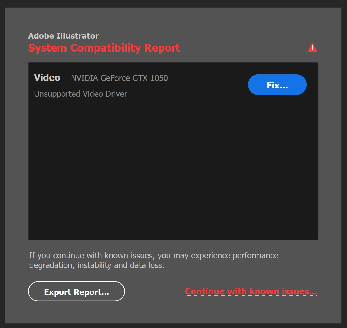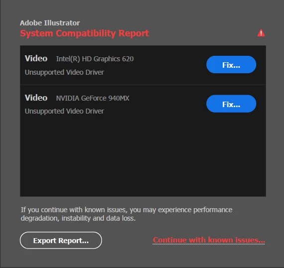 I have an Acer Aspire A515 laptop that I have been using Illustrator on for more than a year now. There were no issues all year long, until the recent week where I would get a pop-up during launch where the error message states that I have an unsupported video driver.
