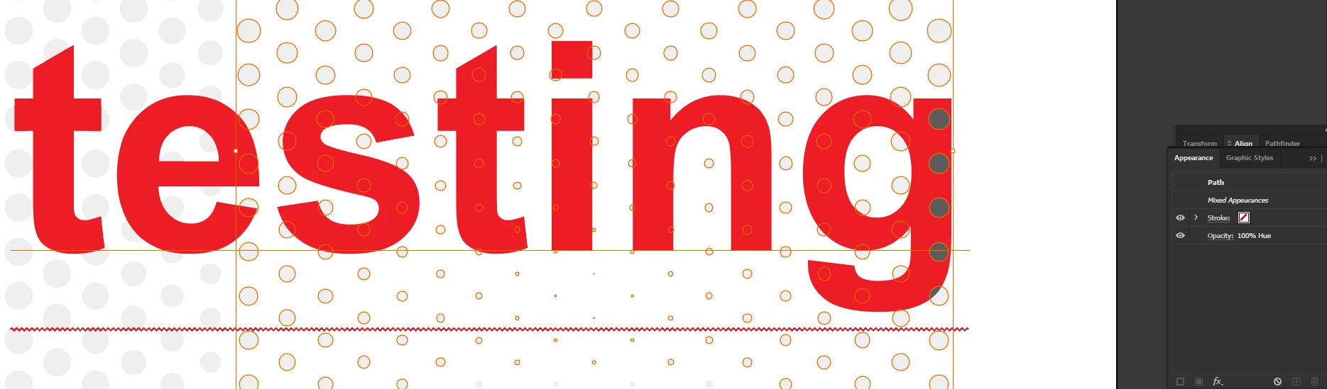 However, I'm seeing a peculiar behaviour by illustrator where it's only affecting the last vertical row of the circles even though all the circles have the same appearance. What is happening and how to solve it?