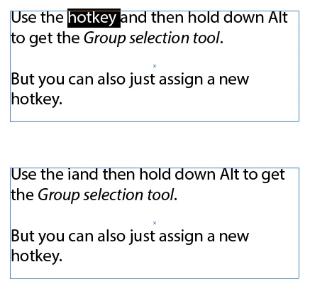 Using the hotkey for Eyedropper tool with the Text tool active and text selected replaces the text with “i”. Is there any trick to invoke the Eyedropper tool with a hotkey so that the selected text remains selected?