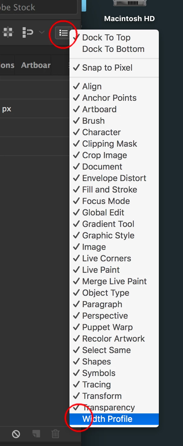 In previous versions of Illustrator there were options to adjust a variable width profile from the context menu at the top, though in 23.0.4. I reset my workspace to essentials though I still do not see the option. Where can I find the option? Is there a panel for it?