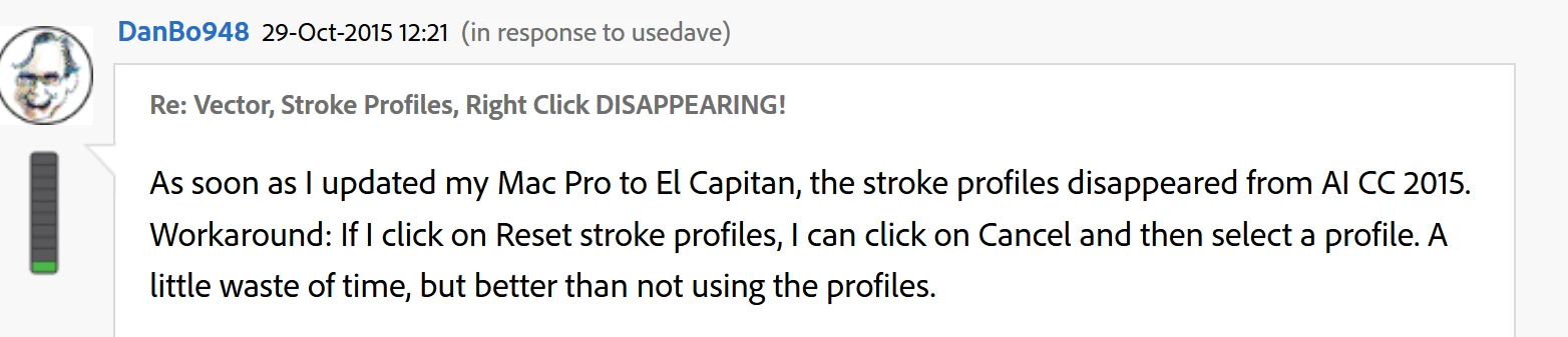Re: Vector, Stroke Profiles, Right Click DISAPPEARING!