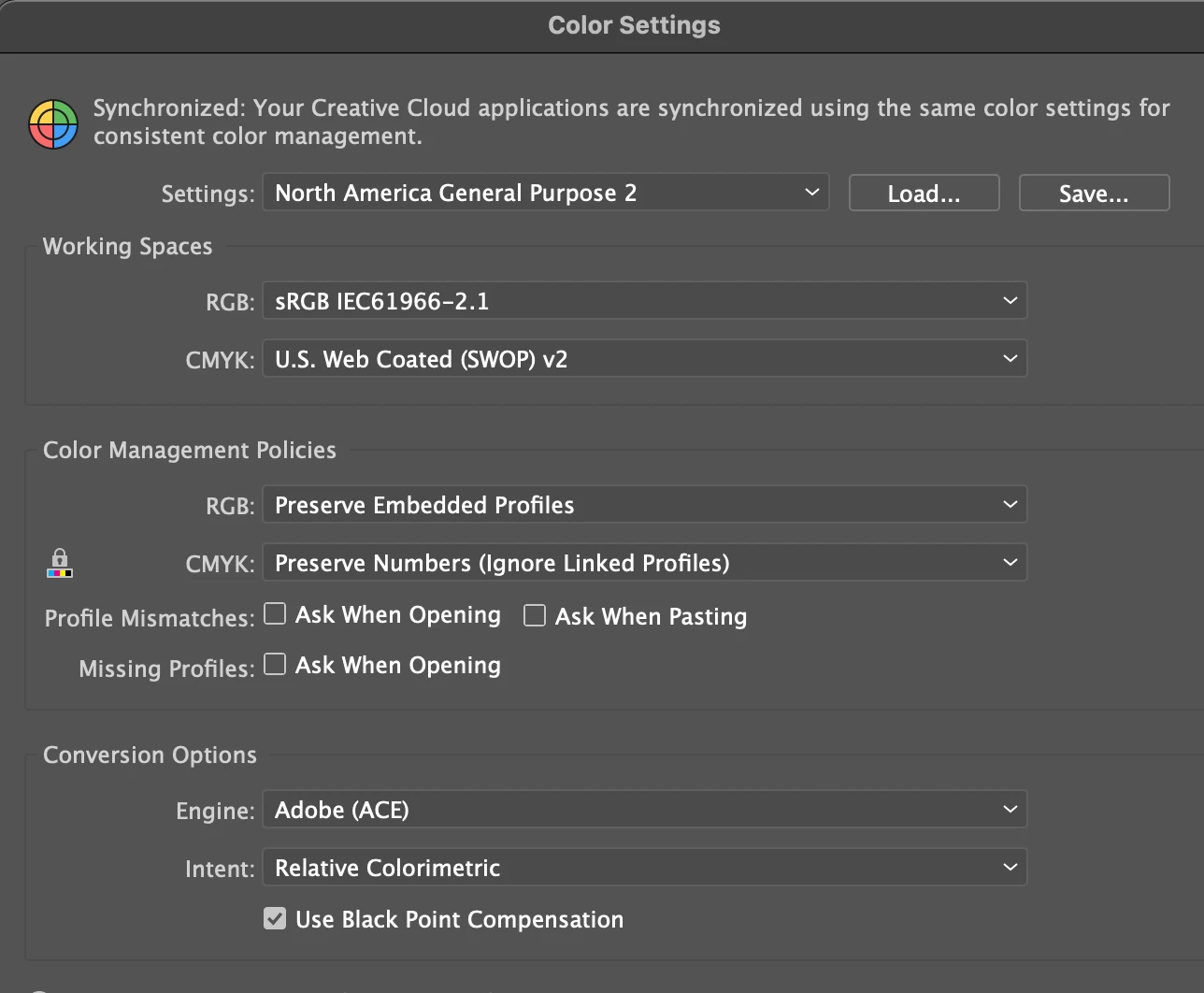 Your Color settings seem fine, assuming your file is in CMYK mode