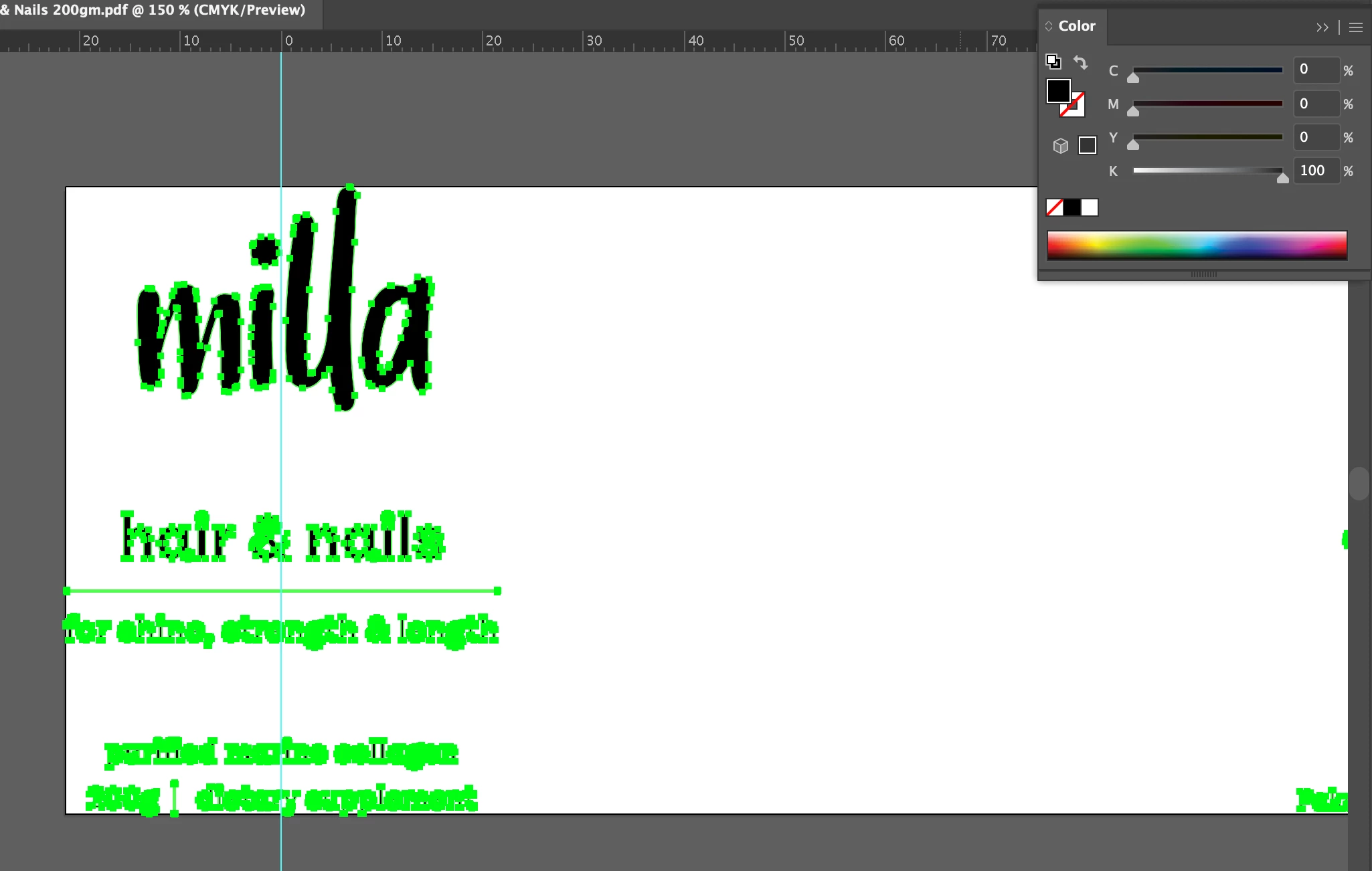 have tried to print it in another printer?? can you show the colors on illustrator? is it 100% black? C0 M0 Y0 K100