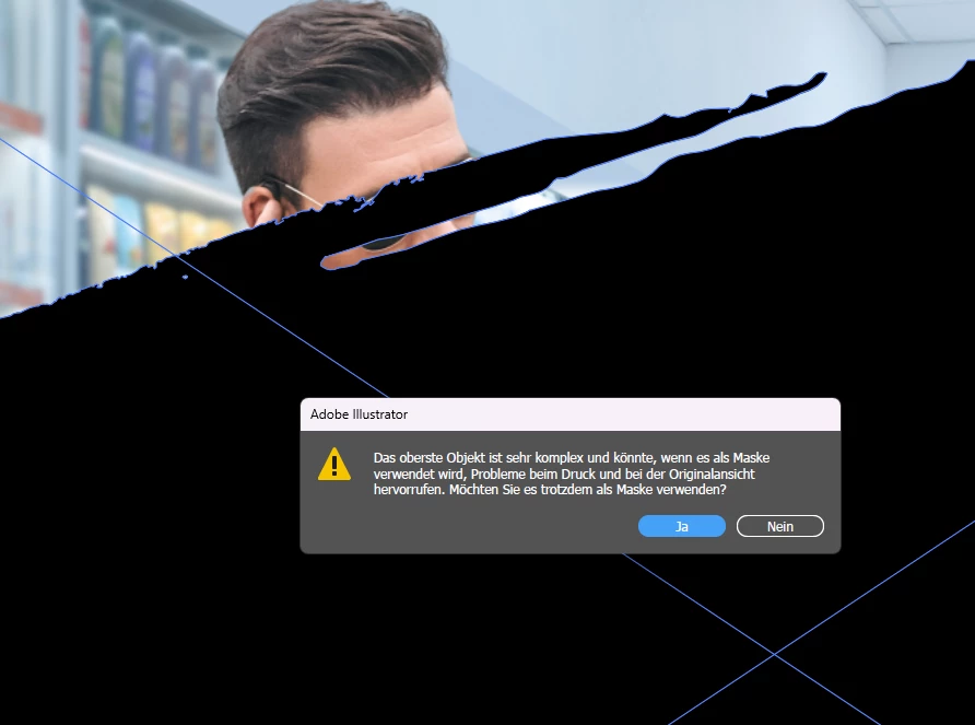 "Das oberste Objekt ist sehr komplex und könnte, wenn es als Maske verwendet wird, Probleme beim Druck und bei der Originalansicht hervorrufen".
