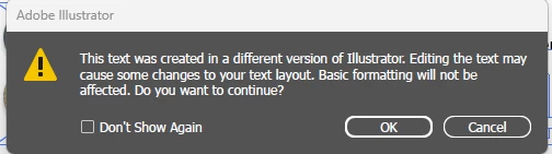 Warning Pop-Up: This Text was Created in a Different Version of Illustrator