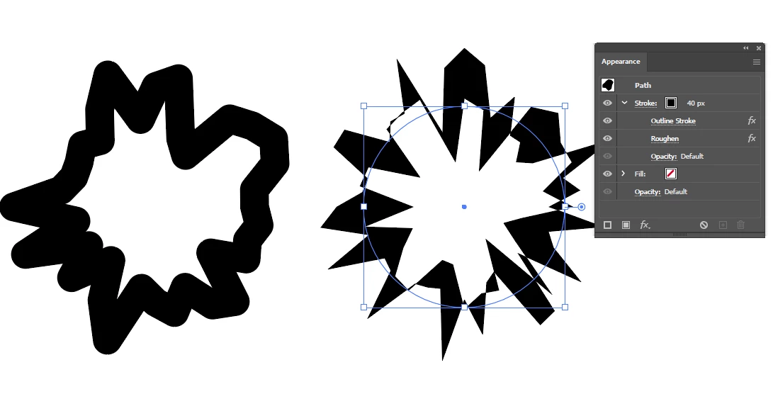 A simple example: both shapes have 'Roughen' applied, but the right one also has 'Outline Stroke'. It acts as if the ellipse is a compound path rather than a single stroked path, roughening the outer and inner rings separately.