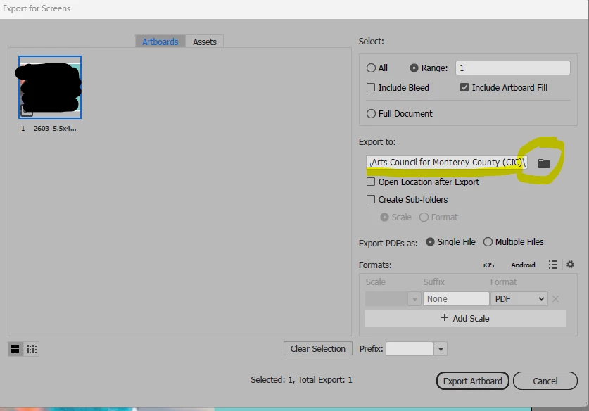 when exporting for screen, Illustrator doesn't go to the path where the file is saved, but to whatever path was last used