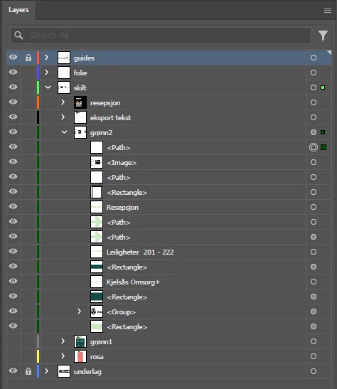 I have selected a single element inside a sublayer, <path> in the sublayer "grønn2":