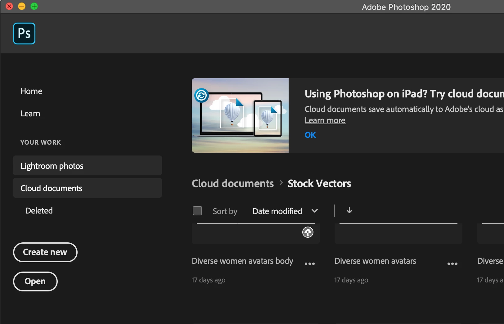 So... in Photoshop my home screen has a clearly visible section of "my work" with all my saved cloud documents. When I open Illustrator, I can't see anything like that. I've been trying to figure out how to get a vector image I drew in Fresco (and saved to cloud docs) to open in Illustrator. All adobe products, so I feel like I'm missing something. Any help would be appreciated!