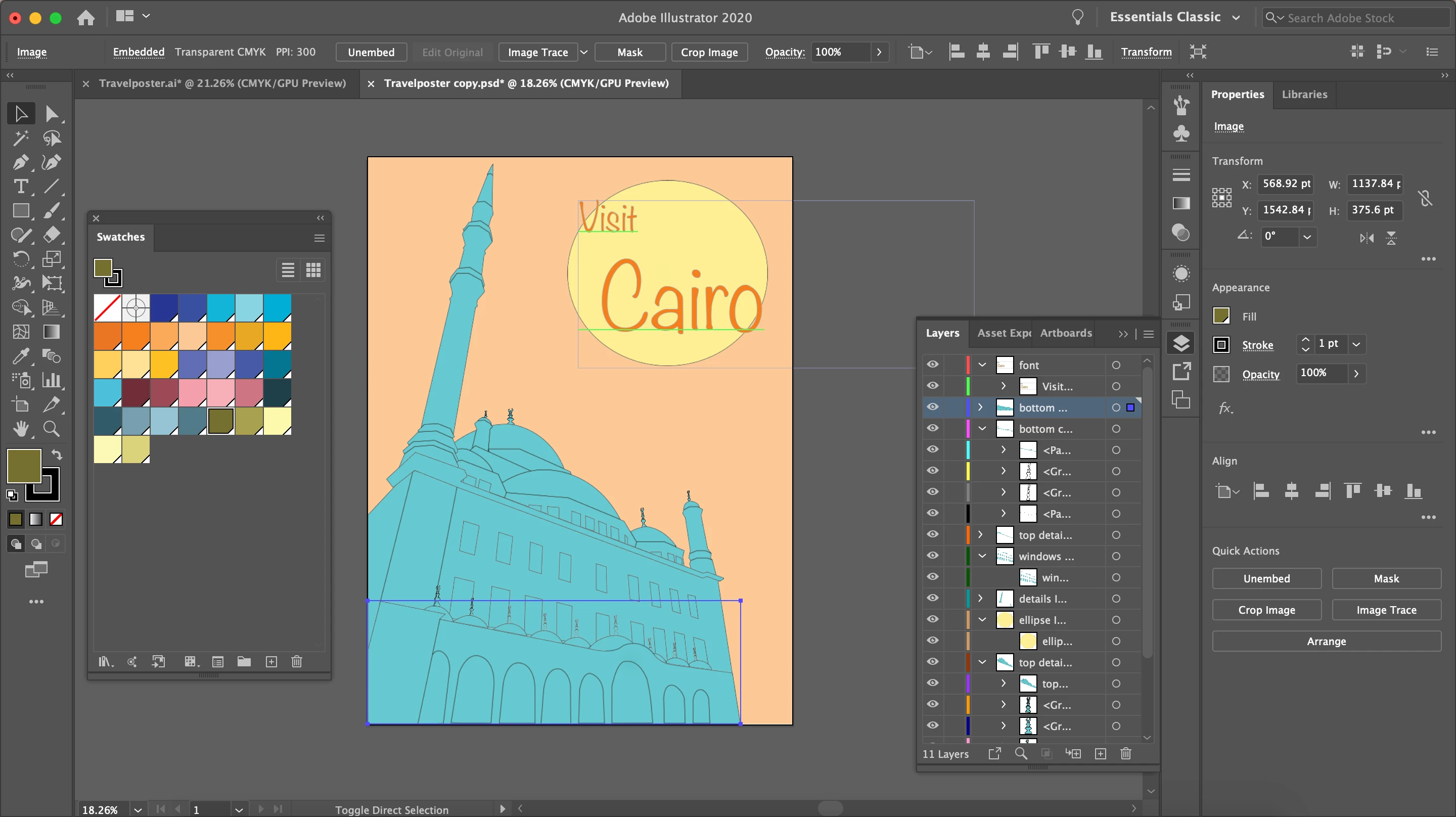I moved a file from photoshop to illustrator and when I click on a layer and choose a color it does not show and sticks with the orginial color. As you can see in this screenshor, a layer is selected and on the far bottom left you could I have selected a different color than what is actually shown on this layer. What could be the problem?