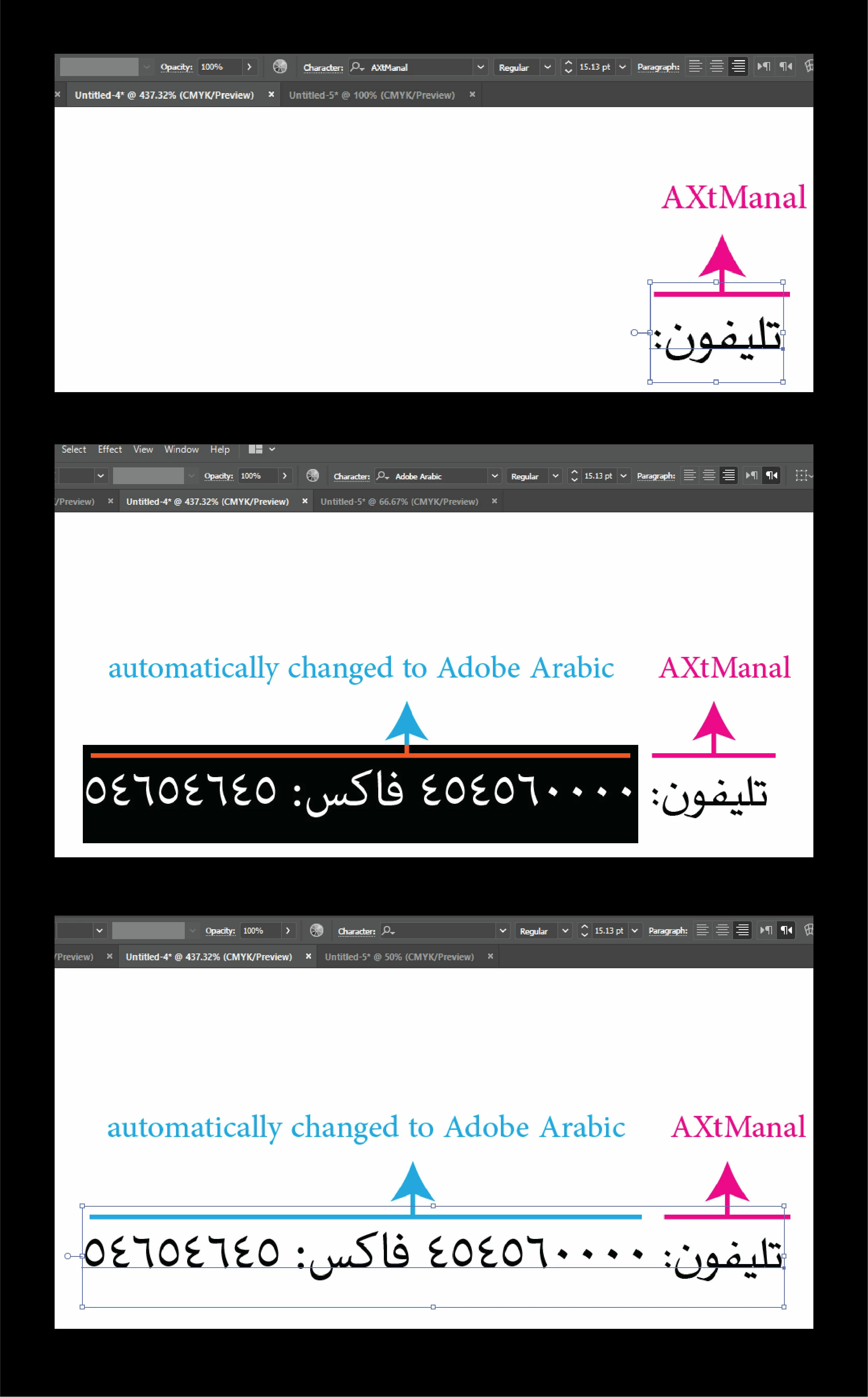 I am using Adobe Illustrator in Mac and Windows. In Mac I can type AXT Arabic fonts without any problem. But in windows when am typing numbers automatically changed to Adobe Arabic Font and continue as adobe Arabic Font. How can I solve this Issue. If anyone can will suggest will be appreciate.