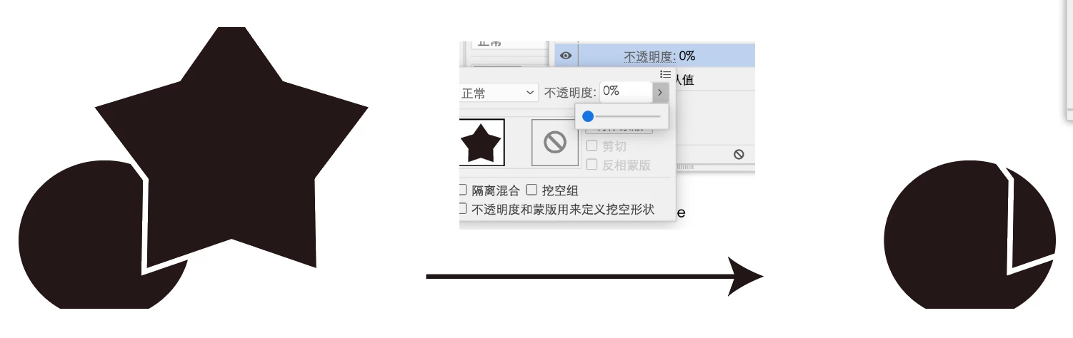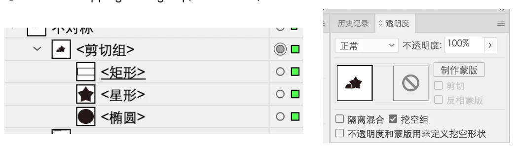 ② Drawing shapes within the clipping mask group reduces transparency, but does not have knockout effect.