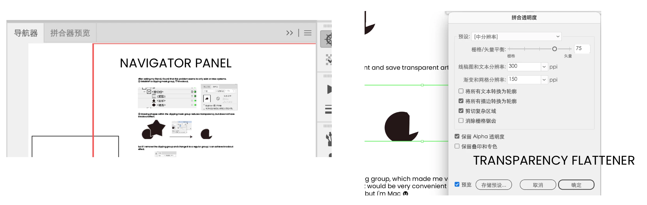 But previewing in the navigator panel is normal, and Transparency Flattener is also normal.
