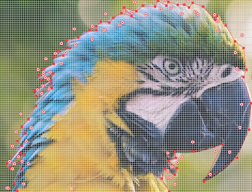 I'm using my pen tool to outline the shape of my image, but after I add a new point in the middle to make triangles, the outline disappears.