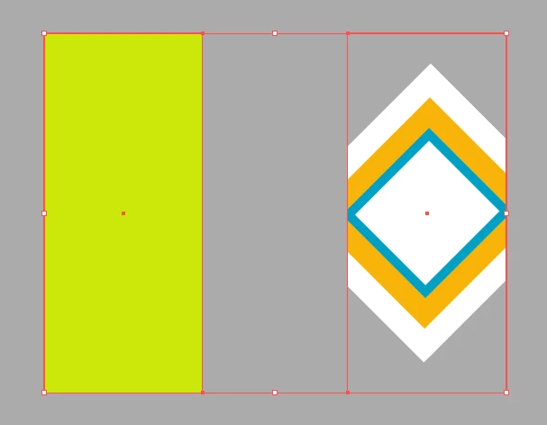 You see a group that consists of: on the left is a regular rectangle, on the right is a clipping mask, in which the mask is the same rectangle as on the left, and inside the mask are three rectangles (squares): white, above it orange, and above the orange white with a blue border. Simple, right?