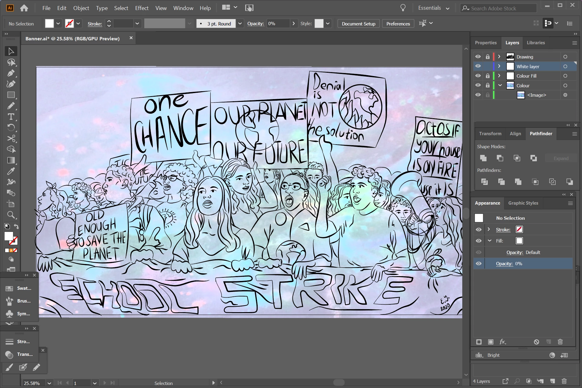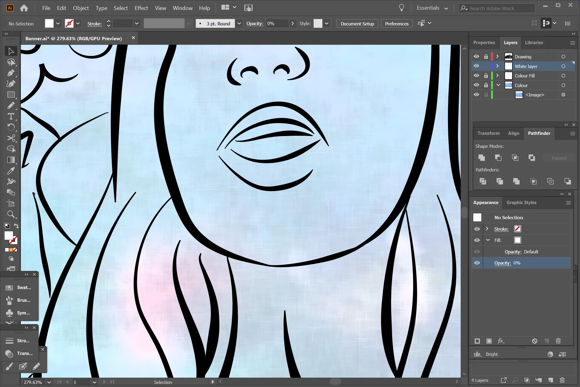This is the file in illustrator. I drew it with the pencil tool. Notice the colours now as well.