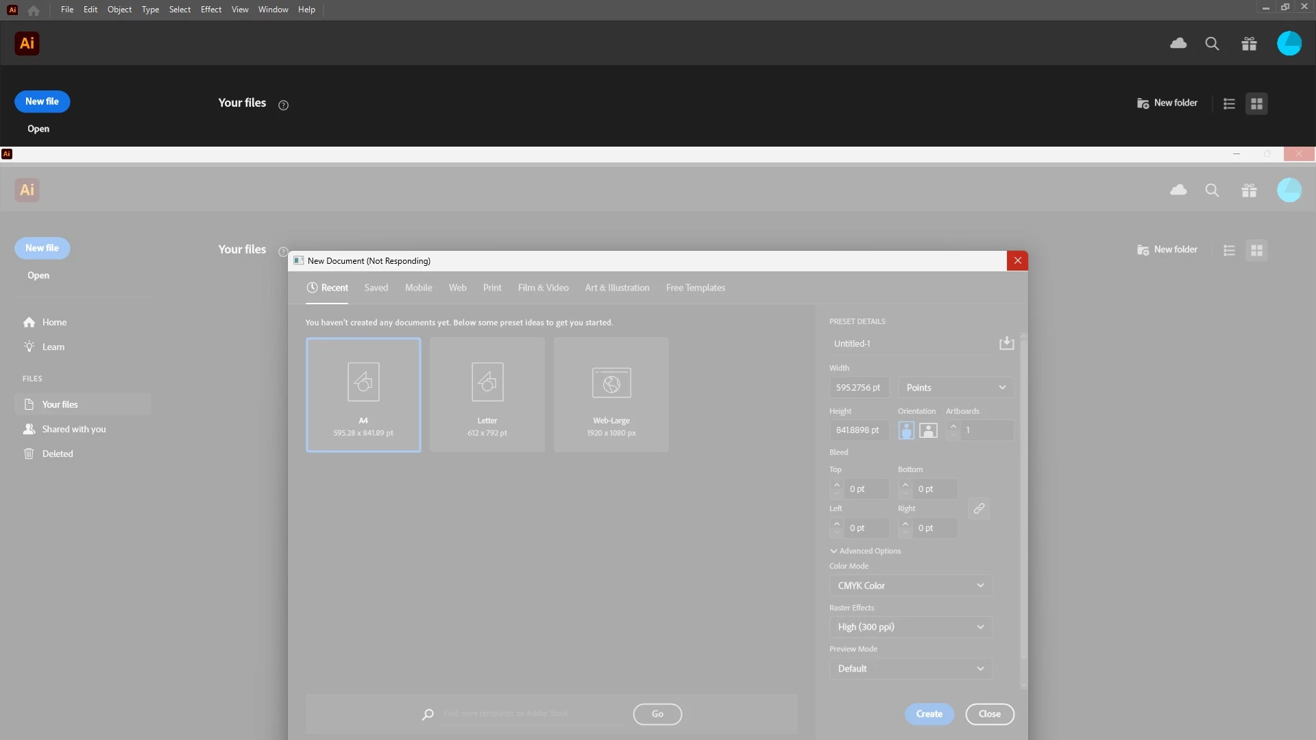 I recently got a new computer with windows 11 and all of the tech requirements are above minimums for illustrator. I installed the latest version 29.8.1 and tried opening a new document but it just locked up. I also tried opening existing illustrator files and again the app just goes completely unresponsive and I have to force end the program. I tried uninstalling and reinstalling it along with computer restarts but that did not help. I also tried a few things from the community board here: renamed UXP file to UXP.old; used the legacy version of the new file dialogue box, installed older versions(29.6 aqnd 29.0) nothing worked.