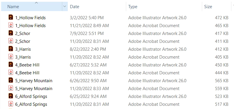 I've noticed that the dates in Adobe Illustrator files don't appear to update in Windows, like Adobe PDFs do. I've attached a screenshot to show what I'm talking about. See how all the PDFs have the most recent dates (in November), while the Illustrator files are all over the place? I've changed all the Illustrator files in the last couple of days, so they should be November, too. Does anyone know what's going on here? It's not a huge deal, but it is helpful to me to see which files are the oldest (and thus potentially need to be updated). Thanks in advance!
