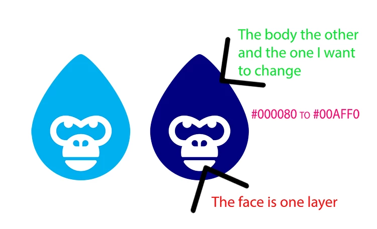 Each on of these images has two layers. The mouth/eyes (1), and the body (2). Instead of going through hundreds of them I am looking of way to randomly generate a unique HEX color for the entire batch. Just changing the body (2) to a random HEX.